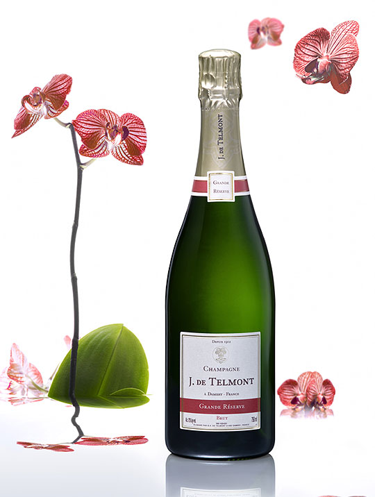 Ce Champagne brut qui a fait la réputation de la Maison de Telmont est le résultat d'un délicat mariage des trois cépages champenois :
